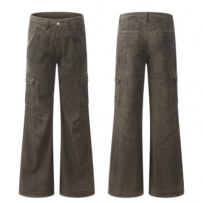 American retro multi pocket hip-hop loose workwear jeans
