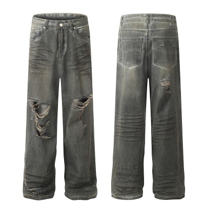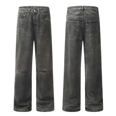 American style ripped straight leg loose wide leg casual jeans