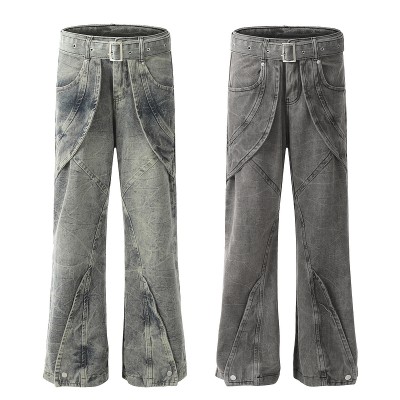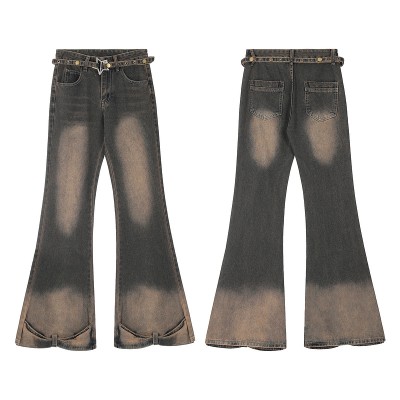 American High Street Cieanfit Style Detachable Belt Splicing Micro flared Pants Loose Jeans