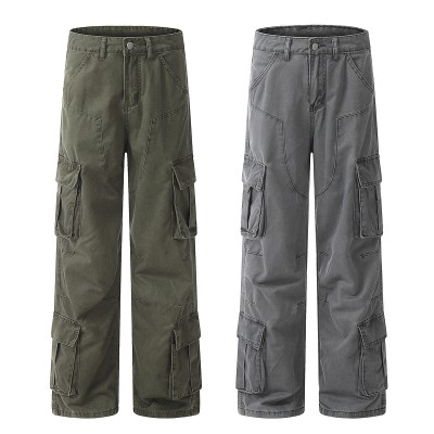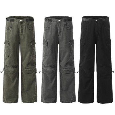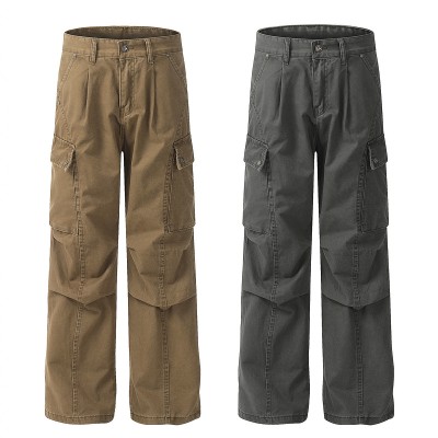 2025 Spring New American High Street Big Pocket Straight Leg Wide Leg Casual Work Pants for Men