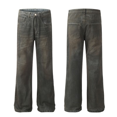 Men's and women's retro heavy industry hip-hop loose wide leg mop jeans